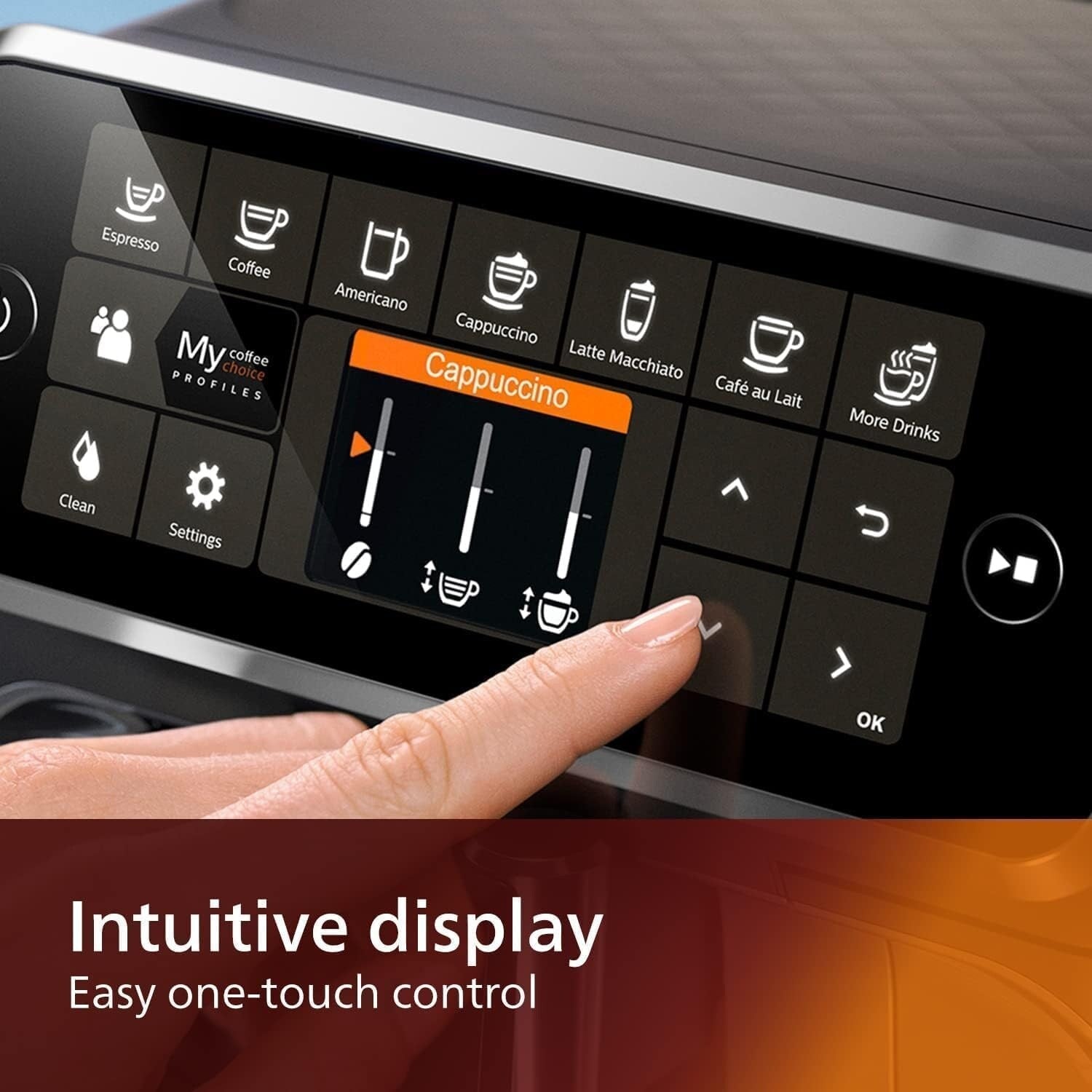 Machine à expresso haut de gamme, 12 cafés chauds/glacés, système LatteGo, moulin en céramique, chrome noir