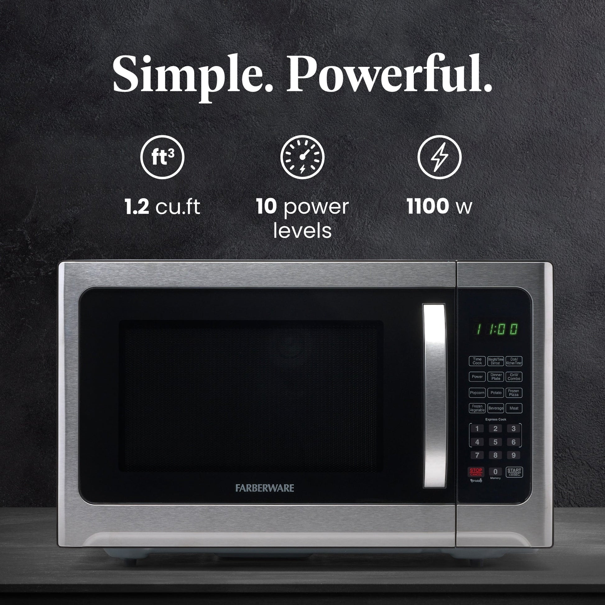 Apportez une touche d'élégance à votre cuisine avec le grand four à micro-ondes Farberware de 1,2 pied cube et 1100 watts avec fonction gril en acier inoxydable. Ce modèle se distingue par sa double fonction de cuisson. Mi-gril, mi-four à micro-ondes, cette technologie vous permet de dorer et de croustiller vos aliments à l'extérieur tout en les conservant juteux à l'intérieur. Un mode économie d'énergie vous permet d'économiser de l'énergie lorsque le micro-ondes n'est pas utilisé. Des fonctionnalités telles que le démarrage instantané de 1 à 6 minutes, le bouton de commande +30 secondes, les 10 niveaux de puissance, les 2 options de décongélation automatique et la fonction mémoire simplifient la préparation des aliments. Sa fonction de cuisson multi-étapes ajuste le niveau de cuisson en cours de cycle pour une finition parfaite. Les 9 programmes de cuisson One-Touch vous permettent de réchauffer vos plats du quotidien en quelques secondes. Parmi les autres caractéristiques, citons un écran LED vert avec minuterie et horloge, ainsi qu'une sécurité enfant pour éviter toute utilisation accidentelle.