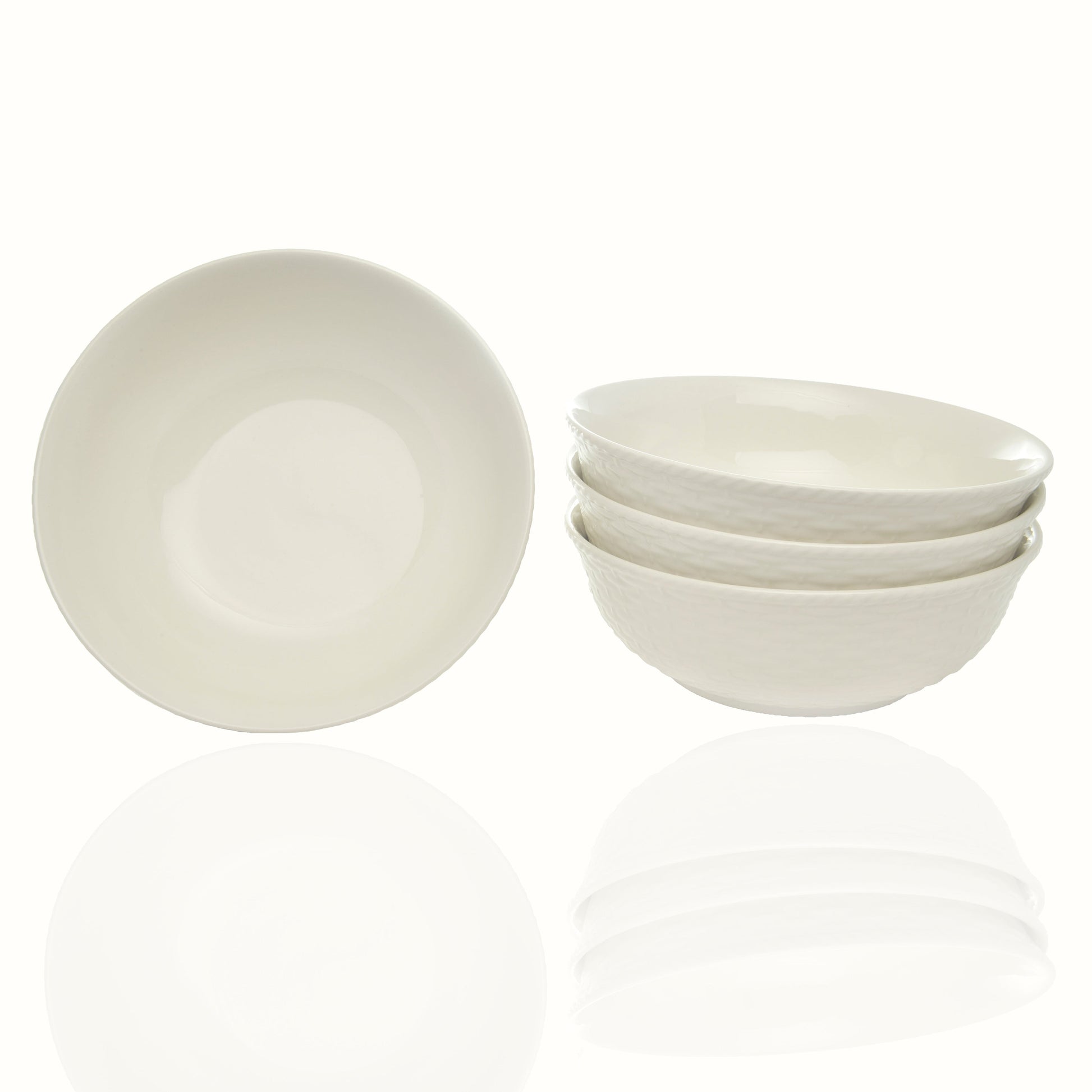 - L'ensemble comprend 6 assiettes plates rondes, 6 assiettes à salade rondes et 6 bols coupés