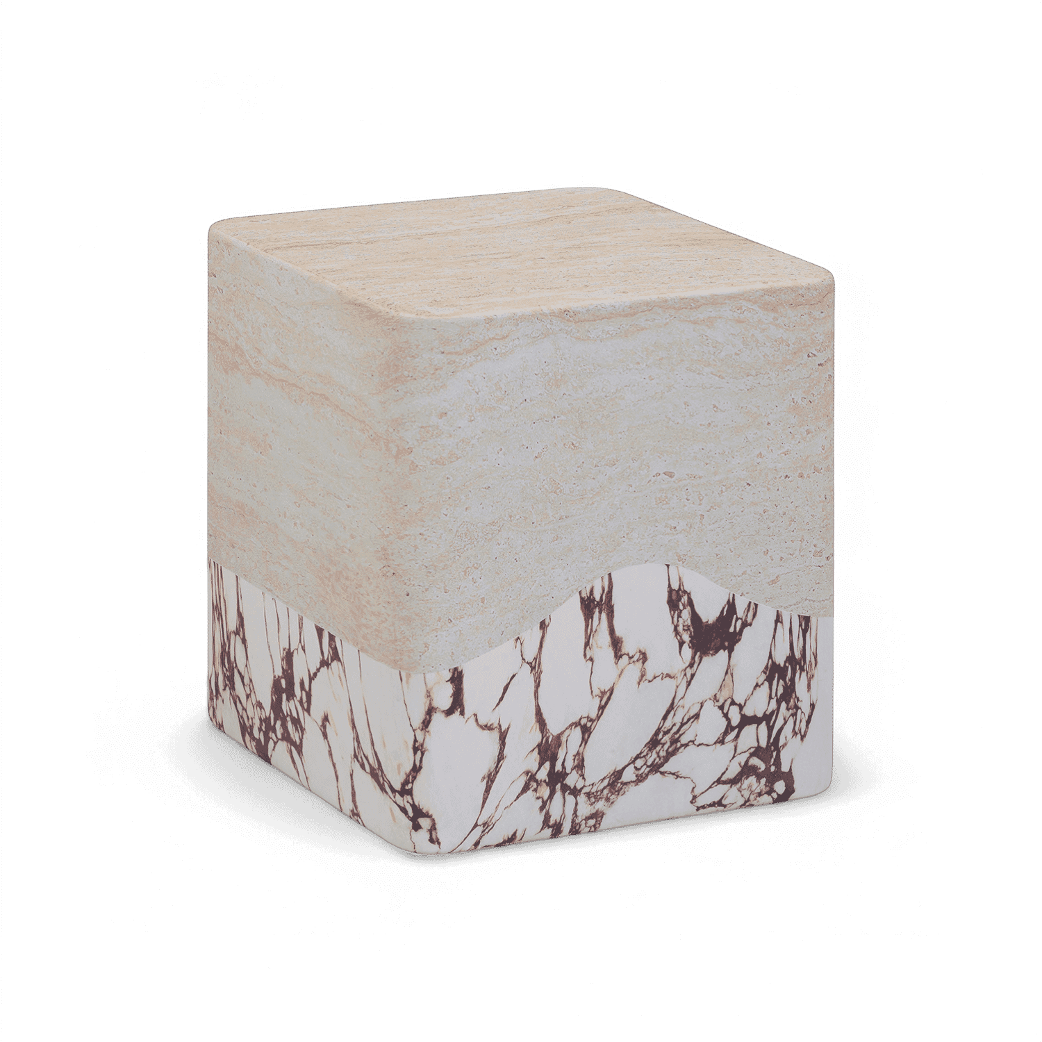 La table d'appoint Regalia en travertin et brèche présente une combinaison de textures qui sublime les espaces intérieurs comme extérieurs. Son design unique et sa construction robuste en font un ajout pratique et élégant.