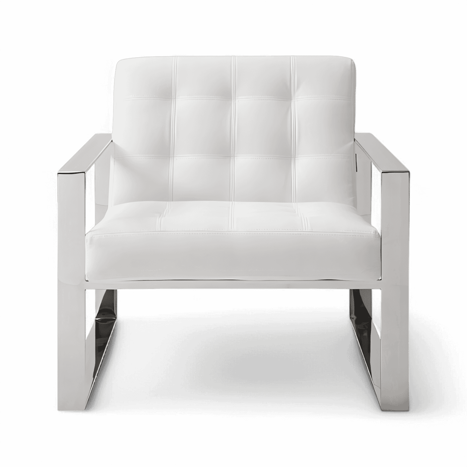 Le fauteuil Rivoli blanc ultra-moderne est un ajout tendance, confortable et abordable à tout intérieur. Composé de cuir écologique blanc et de pieds en acier inoxydable poli, il offre un style séduisant. Ses coussins capitonnés sont généreusement rembourrés pour un confort optimal.