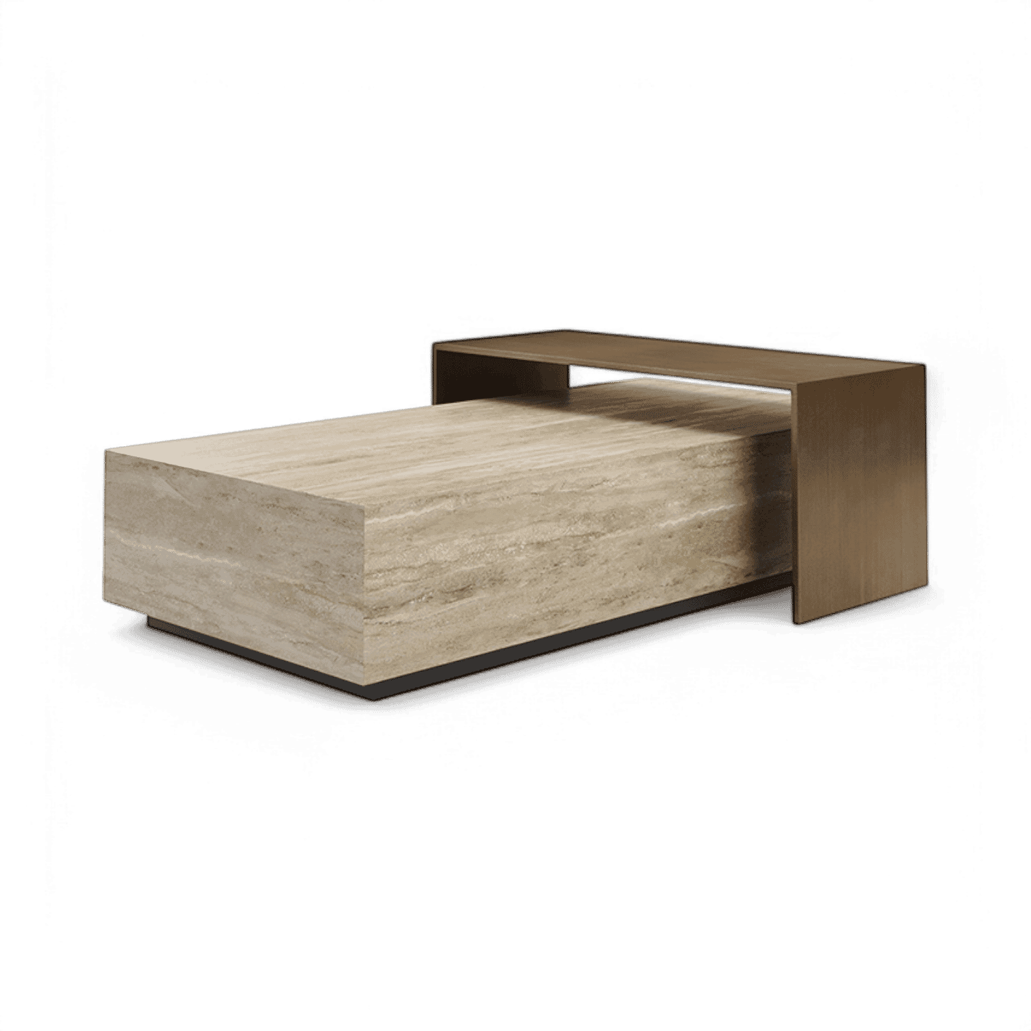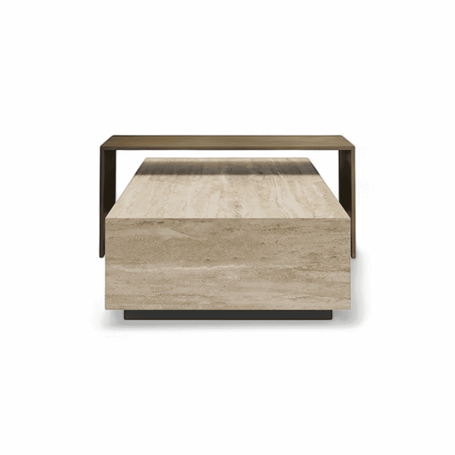 La table basse Roma en travertin respire l'élégance moderne avec sa silhouette rectangulaire épurée et sa luxueuse finition marbrée en travertin. Sa surface lisse crée un point focal saisissant, idéal pour sublimer tout espace de vie. Son design est sublimé par un élément en laiton optionnel qui offre non seulement une surface supplémentaire pour plus de fonctionnalité, mais ajoute également une touche d'originalité visuelle grâce à son éclat métallique chaleureux. Idéale pour créer une esthétique chic et harmonieuse, la table basse Roma allie harmonieusement forme et fonctionnalité.