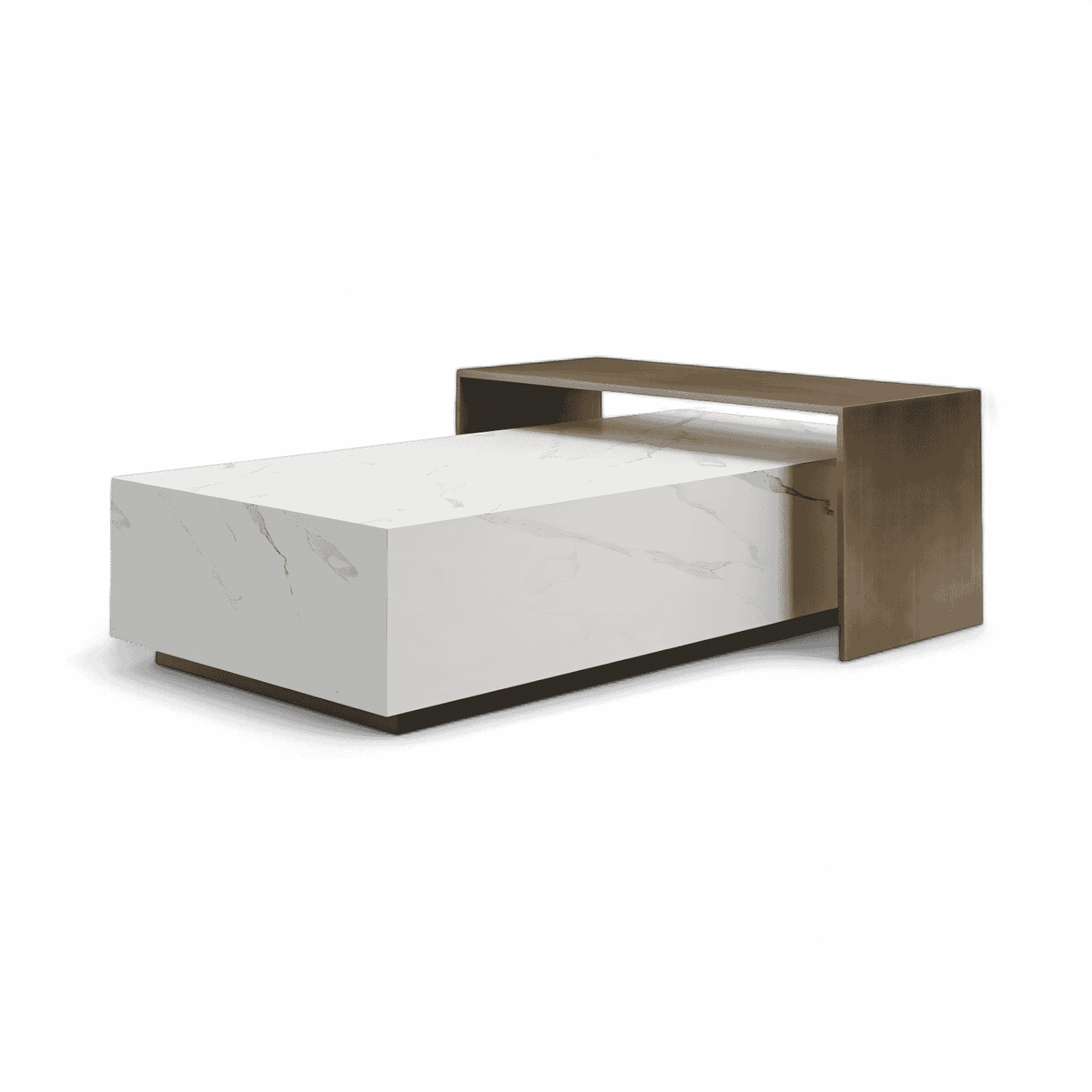 La table basse Roma blanche respire l'élégance moderne avec sa silhouette rectangulaire épurée et sa luxueuse finition marbrée blanche. Sa surface lisse crée un point focal saisissant, idéal pour sublimer tout espace de vie. Son design est sublimé par un élément en laiton (en option) qui offre non seulement une surface supplémentaire pour plus de fonctionnalité, mais ajoute également une touche d'originalité visuelle grâce à son éclat métallique chaleureux. Idéale pour créer une esthétique chic et harmonieuse, la table basse Roma allie harmonieusement forme et fonctionnalité.