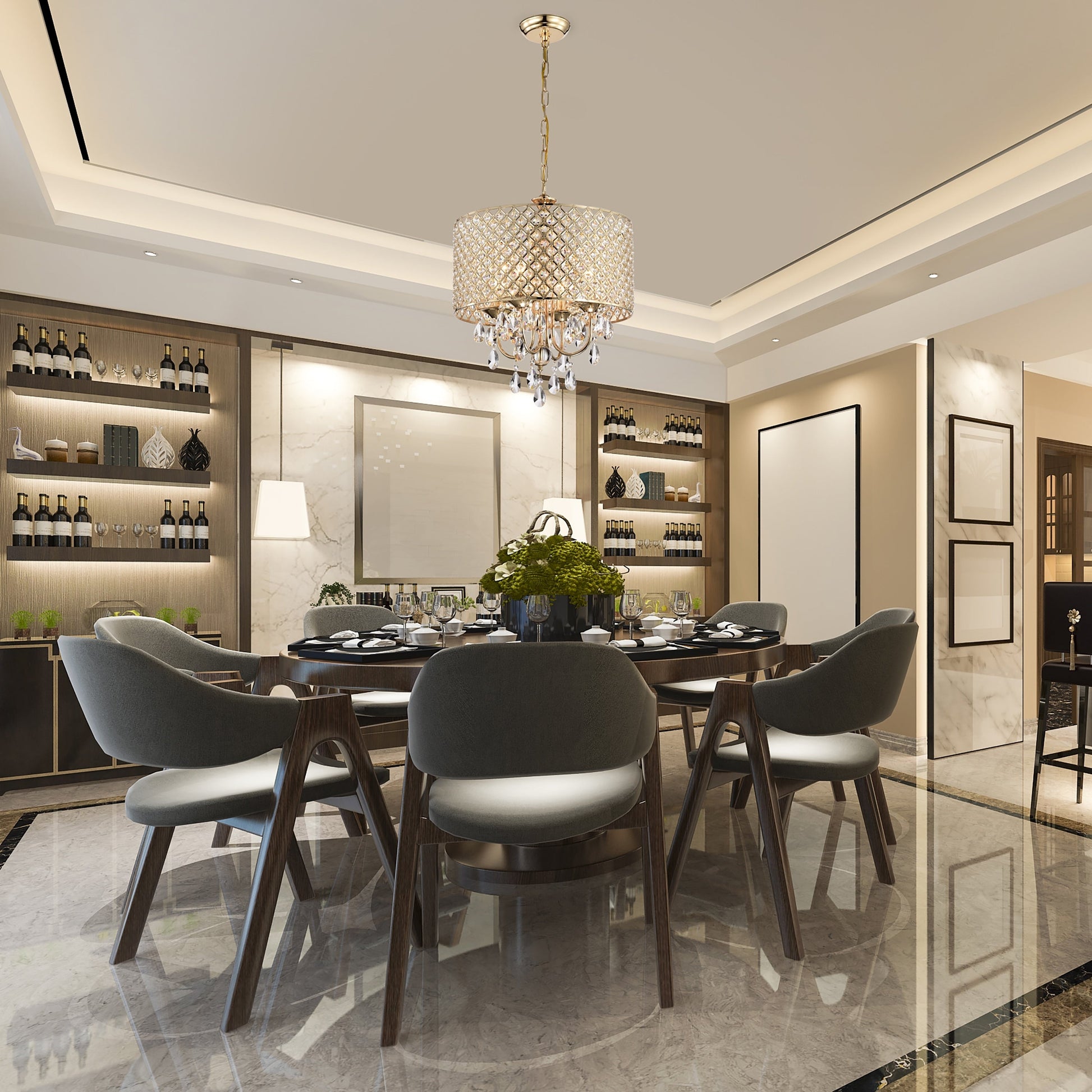 - Lustre à 4 lumières : 17 po de diamètre x 20 po de hauteur avec suspension en cristal, dimensions du tambour : 17 po de diamètre x 8,75 po de hauteur