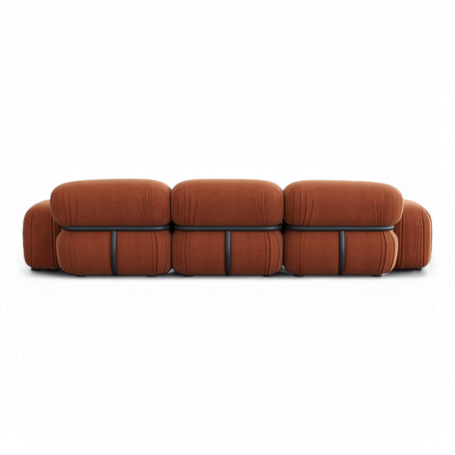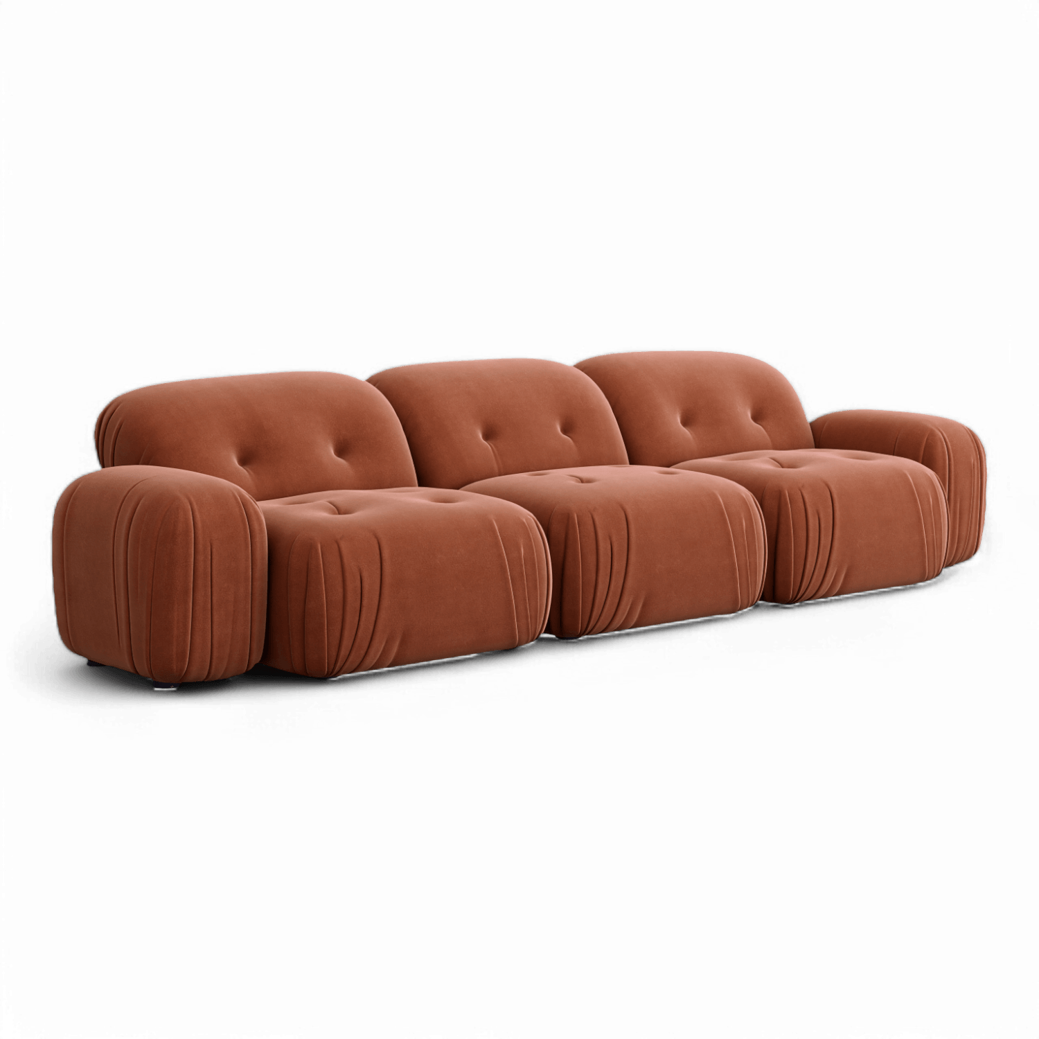 Sublimez votre espace de vie avec le canapé d'angle Rune, chic et luxueux, en velours terracotta. D'une esthétique moderne, ce canapé d'angle trois pièces est entièrement recouvert d'un somptueux velours terracotta, à la texture douce et accueillante.
