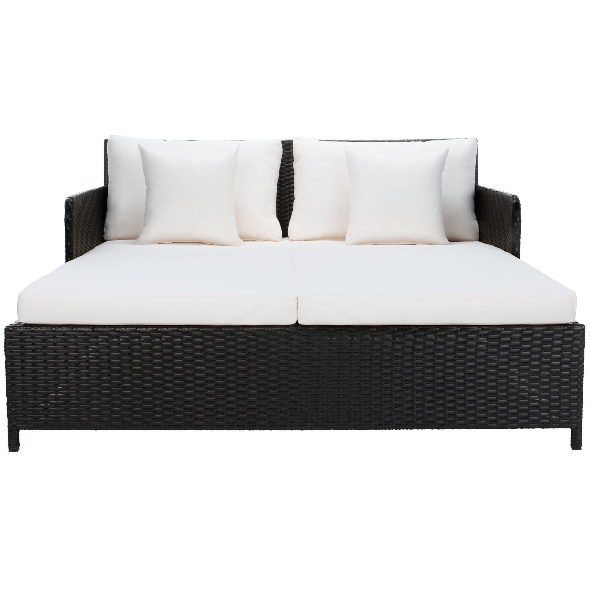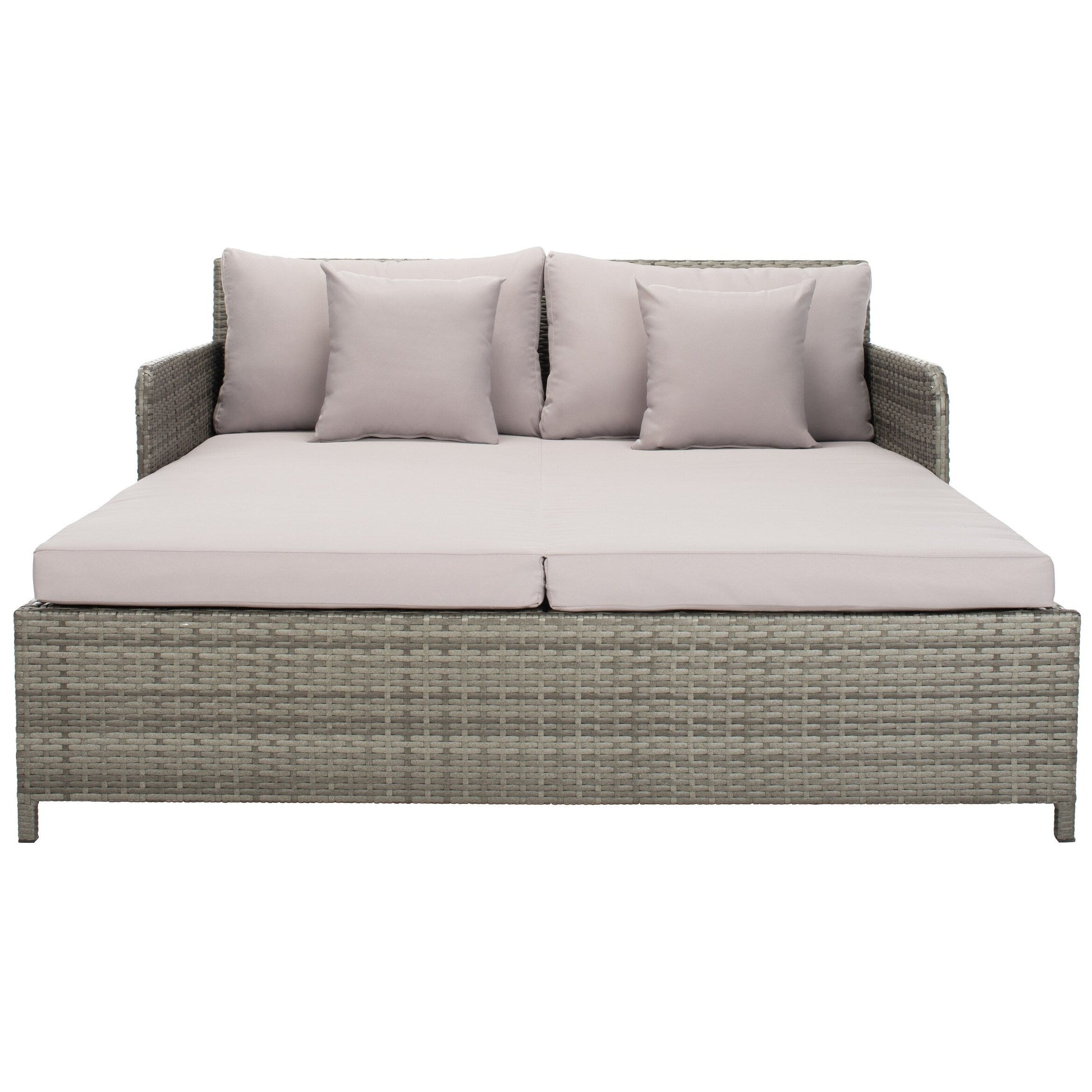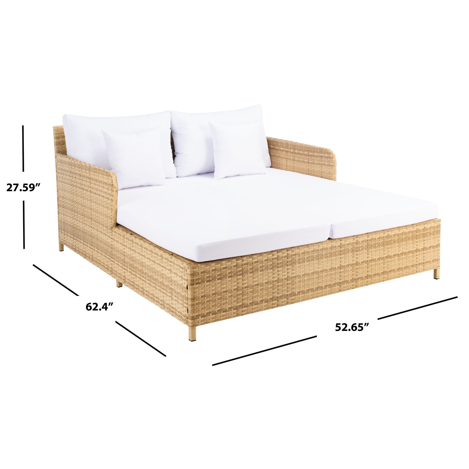 Lit de repos d'extérieur SAFAVIEH Taniyah en osier avec oreiller et coussins - 53 L x 28 P x 62 H
