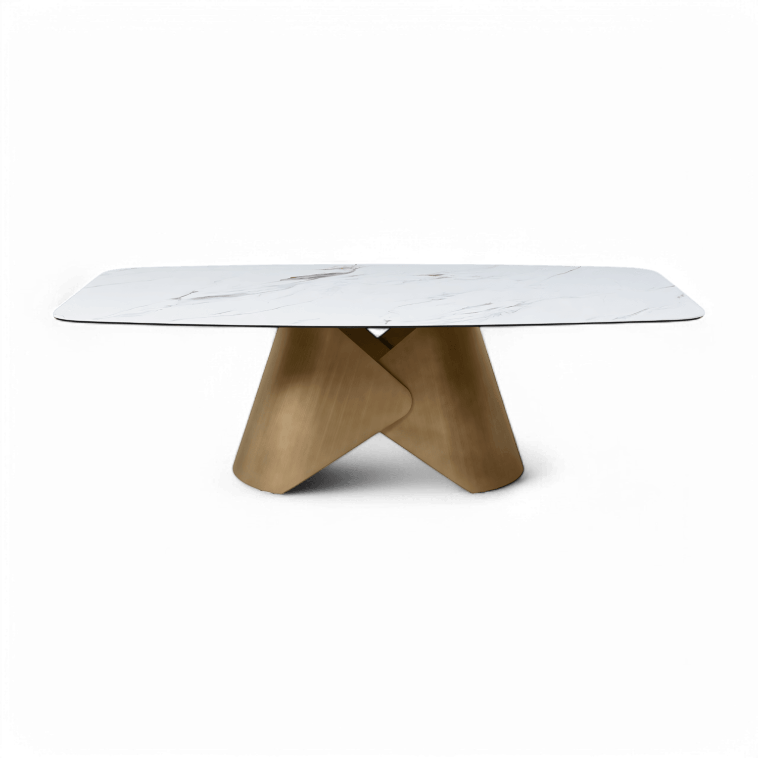 La table à manger Siena blanche allie un design moderne et épuré à des détails luxueux. Son élégant plateau rectangulaire arrondi en céramique brillante lui confère une allure sophistiquée et épurée, subtilement brillante. Son piétement attrayant, d'une riche couleur laiton, présente une structure géométrique unique et une touche artistique. Cette table élégante est une pièce maîtresse parfaite, alliant minimalisme moderne et touches métalliques chaleureuses pour sublimer n'importe quelle salle à manger.