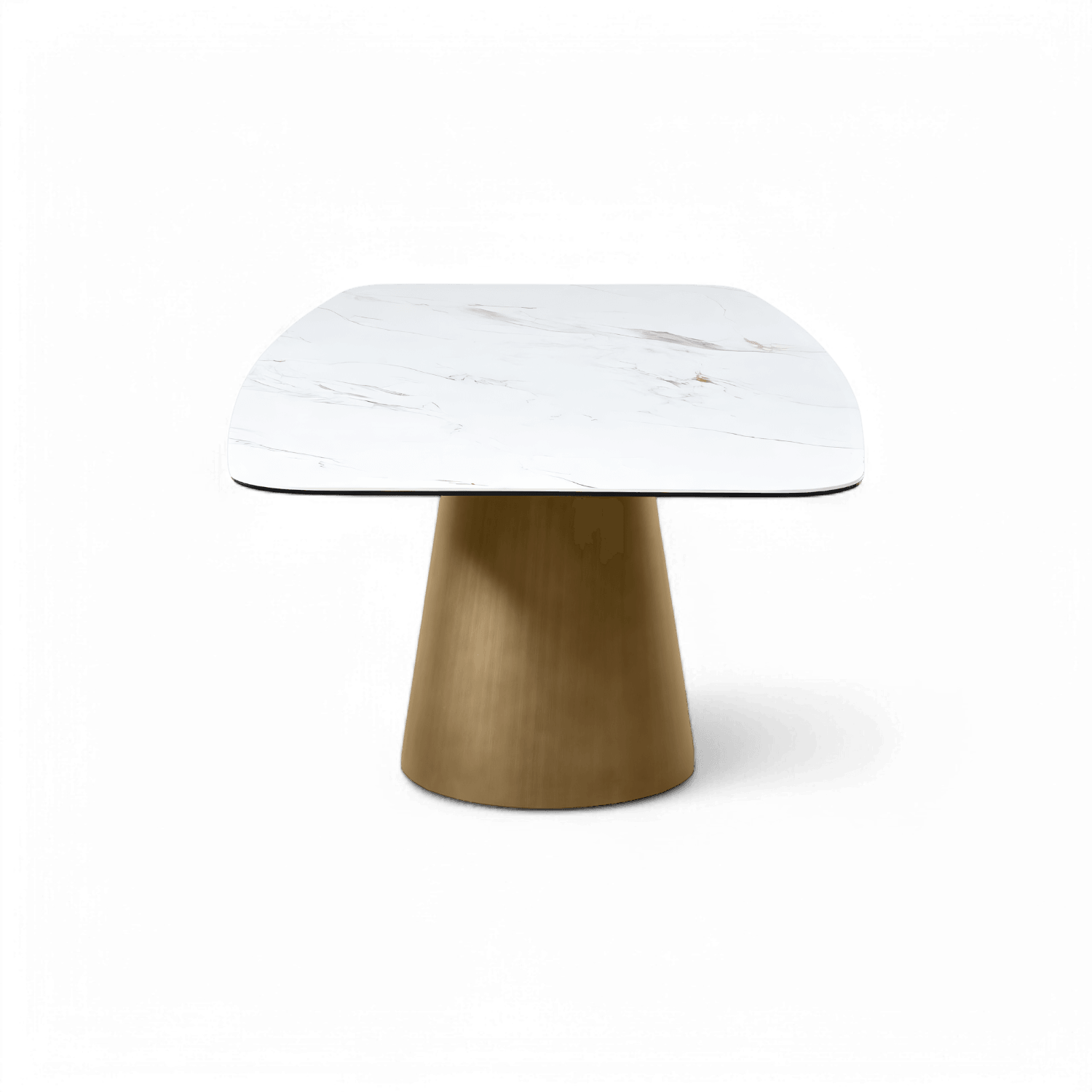 Plateau : Céramique blanche brillante, verre trempé | Pieds : Finition laiton brossé | Structure intérieure : Métal | Matériau du pied/de la base : Métal | Capacité : 6-8 personnes