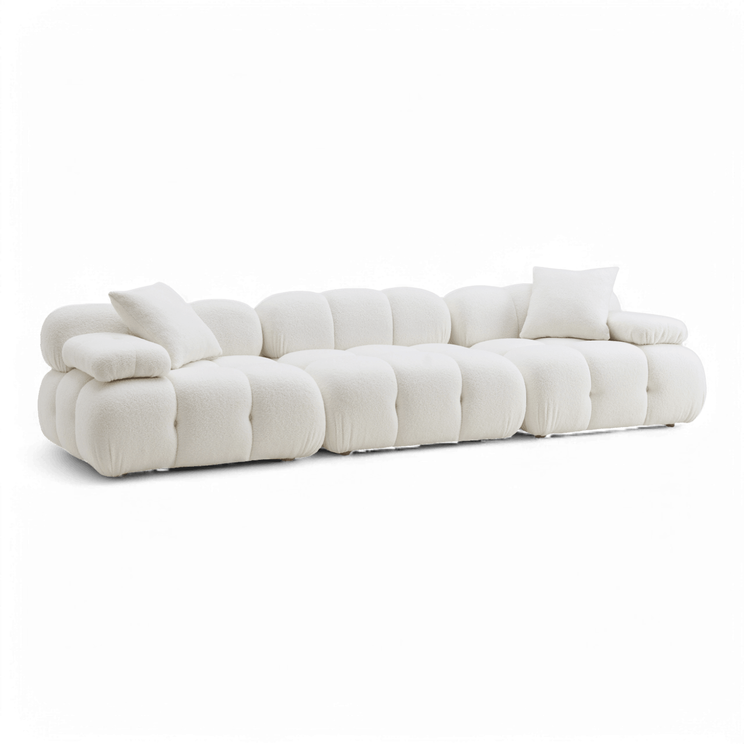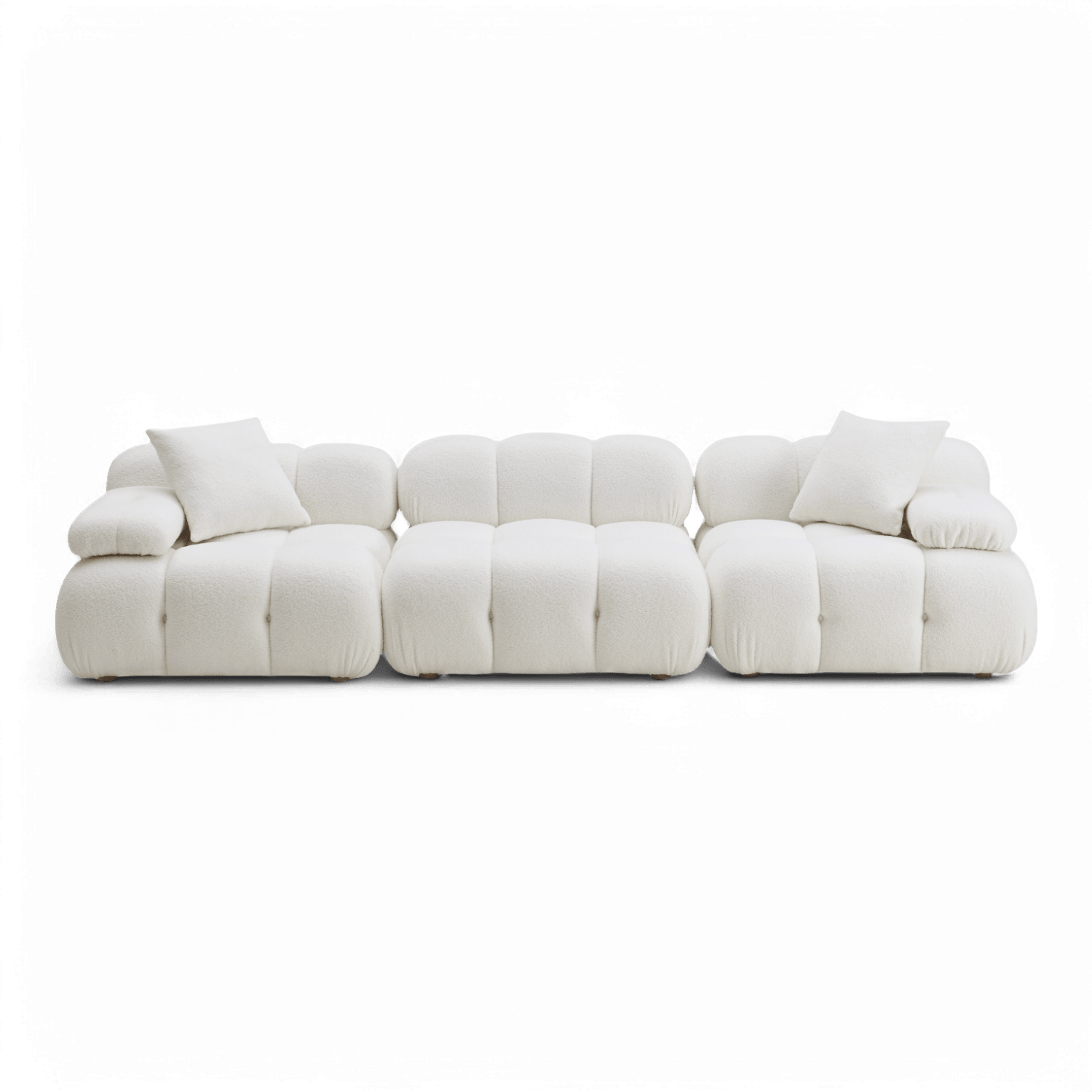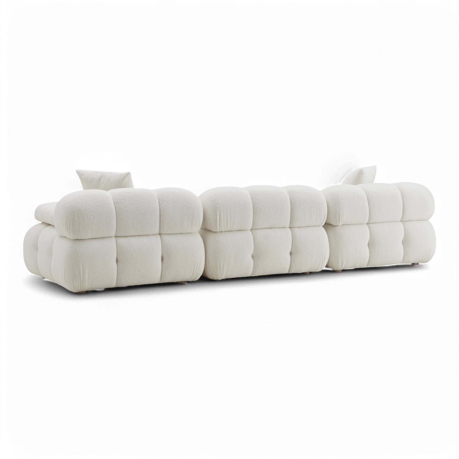 Tissu, contreplaqué, bois | Revêtement en peau lainée vegan ultra-douce | Silhouette moelleuse et capitonnée à la main | Design modulaire offrant des possibilités de configuration infinies : créez la pièce de vos rêves pour votre espace.