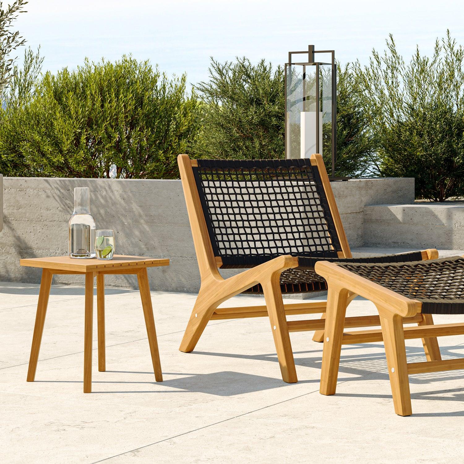Complétez votre aménagement extérieur élégant avec notre table d'appoint d'extérieur Tahiti, en acacia massif. Complémentaire à notre fauteuil et pouf d'extérieur Tahiti, elle vous offre l'espace idéal pour poser un livre, un verre ou tout autre accessoire indispensable pour une journée en plein air, en pleine nature.