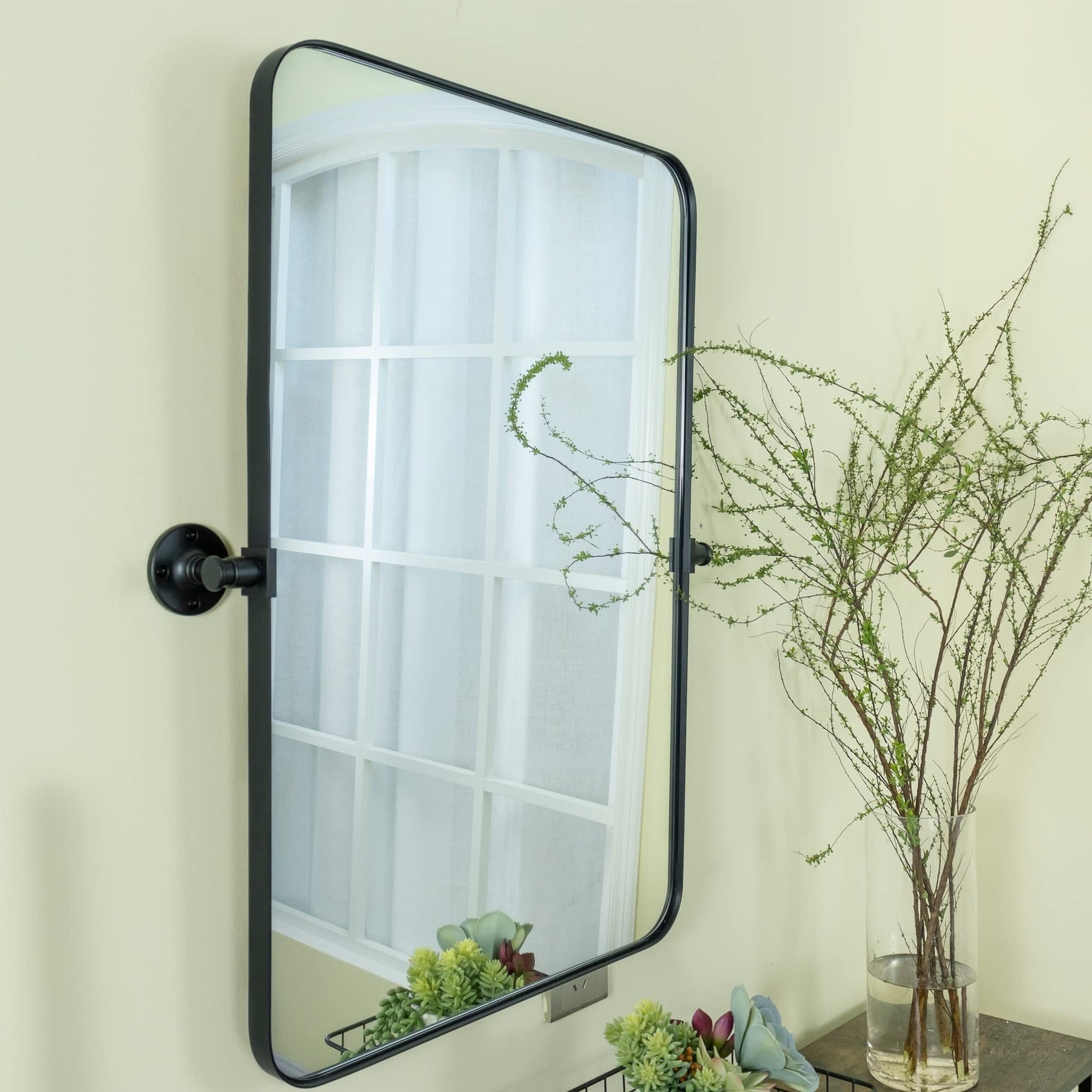 - Angle d'inclinaison : dépassant de 3 pouces du mur, ce miroir de courtoisie inclinable à bord rectangulaire est livré avec des supports muraux réglables, chaque support est en métal de qualité supérieure avec une finition plaquée au lieu d'un revêtement en poudre, qui est extrêmement durable et sûr, évite le desserrage, le glissement ou la rouille trouvés dans certaines autres marques moins chères.