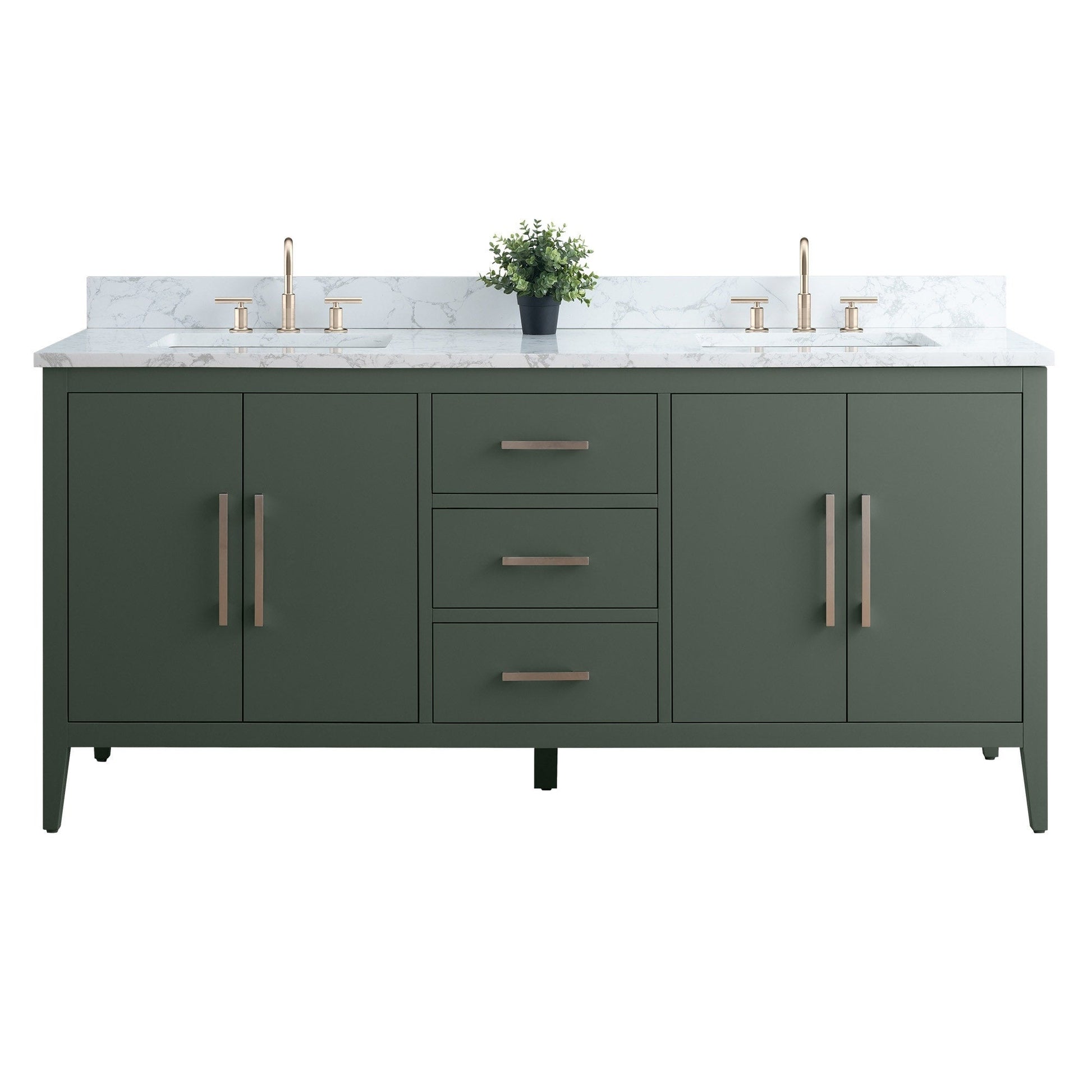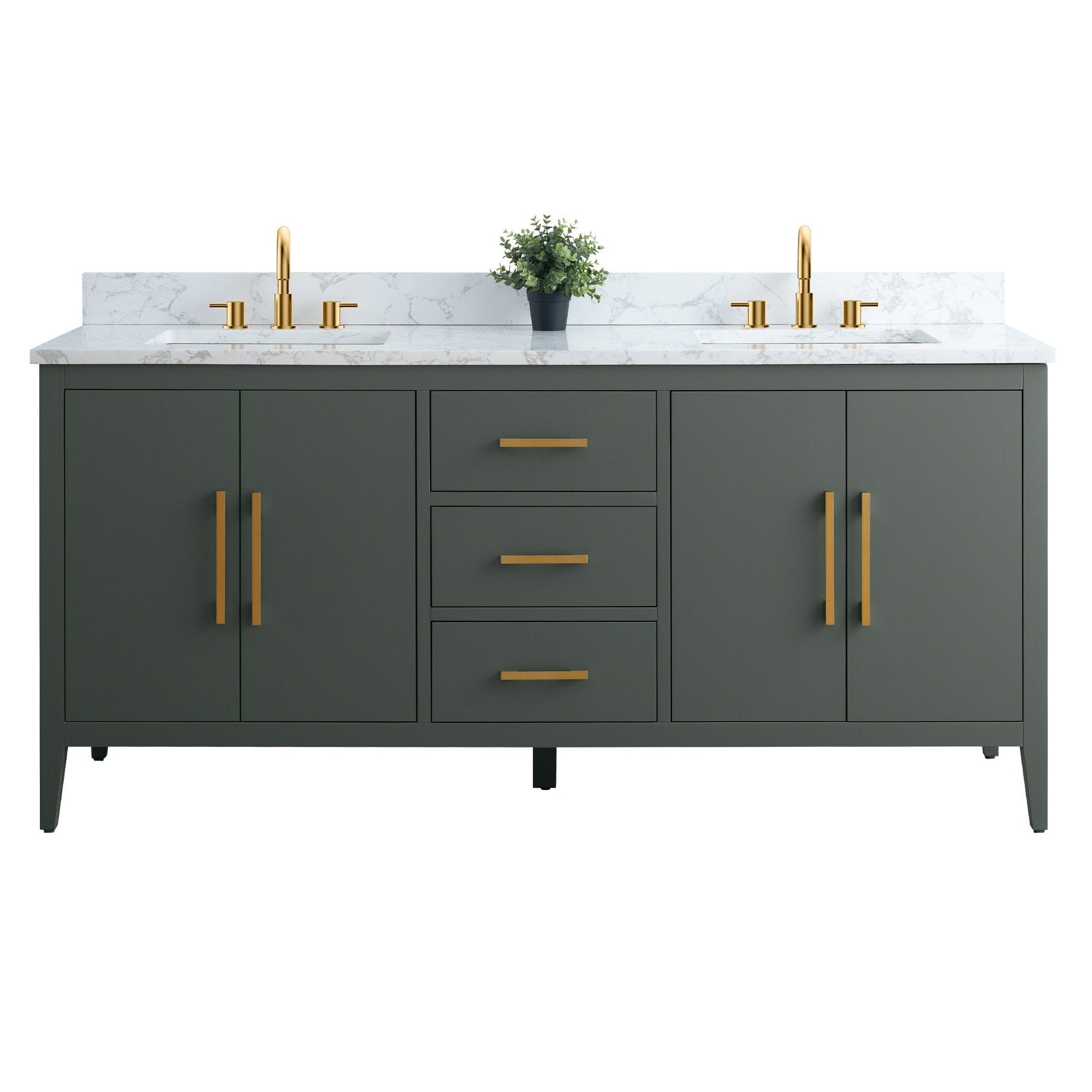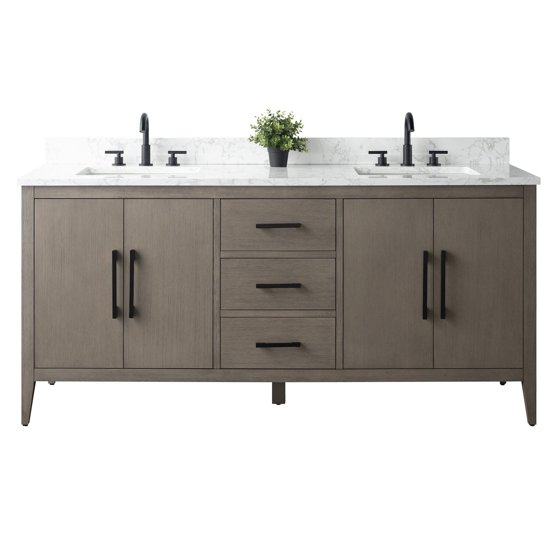 Meuble-lavabo double vasque Vanity Art 72 avec plateau en marbre reconstitué