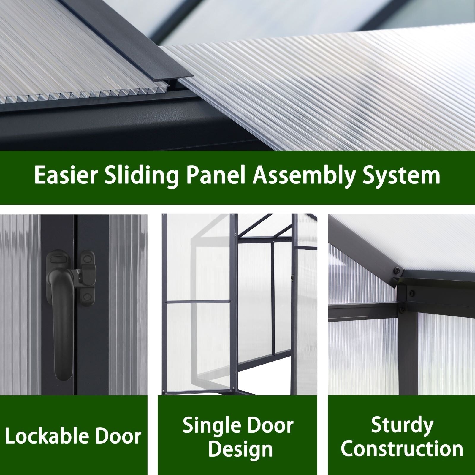 La serre en aluminium est équipée de plaques en polycarbonate résistantes aux UV qui protègent vos plantes des rayons UV nocifs et assurent leur croissance optimale. Vos plantes s'épanouiront ainsi toute l'année, où qu'elles soient.