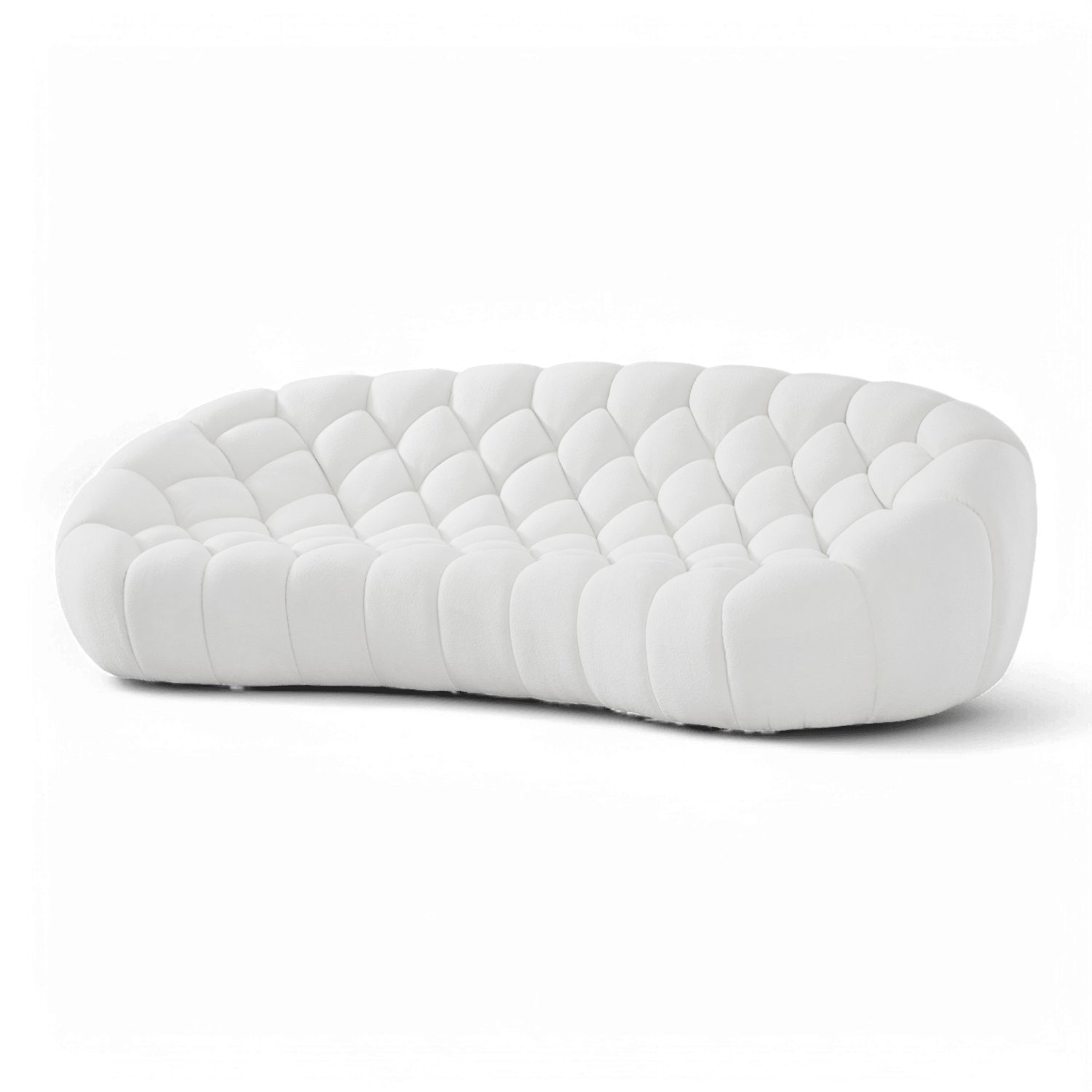 Sublimez votre espace de vie avec le canapé trois places Warby en tissu bouclé blanc. Sa silhouette incurvée unique et sa texture capitonnée luxueuse créent une atmosphère chaleureuse. Le doux tissu bouclé blanc rehausse l'atmosphère chaleureuse du canapé tout en lui conférant une touche de sophistication, le rendant parfait pour les intérieurs minimalistes comme modernes. Avec son confort moelleux et son design affirmé, le canapé Warby est un atout irrésistible pour tous les intérieurs.