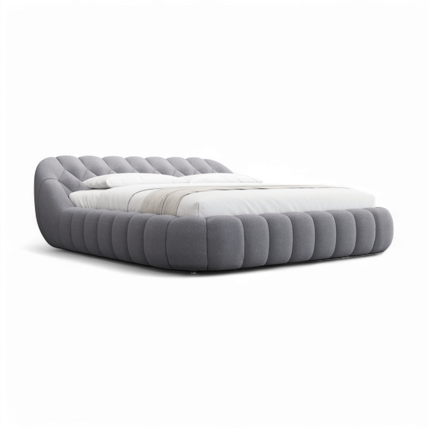 Transformez votre chambre en un havre de confort et de style avec le lit Warby en bouclé gris. Ce lit luxueux présente un design unique et sculptural, avec des bords arrondis et une texture magnifiquement capitonnée qui apporte une touche de douceur et de style à tout espace. Le tissu bouclé gris apporte une touche de sophistication, créant un havre de paix accueillant et apaisant. Parfait pour les intérieurs minimalistes et modernes, le lit Warby allie élégance et confort douillet, ce qui en fait la pièce maîtresse de votre chambre.