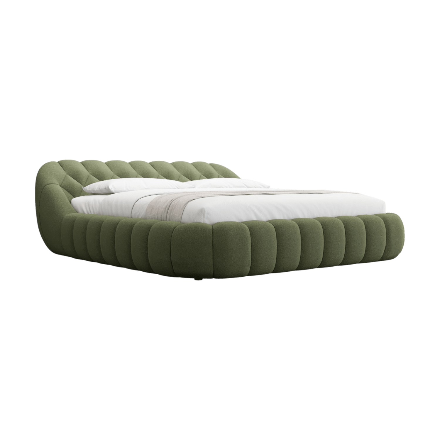 Transformez votre chambre en un havre de confort et de style avec le lit Warby en bouclé vert. Ce lit luxueux présente un design unique et sculptural, des bords arrondis et une texture magnifiquement capitonnée qui apporte une touche de douceur et de style à tout espace. Le tissu bouclé vert apporte une touche de sophistication, créant un havre de paix accueillant et apaisant. Parfait pour les intérieurs minimalistes et modernes, le lit Warby allie élégance et confort douillet, ce qui en fait la pièce maîtresse de votre chambre.