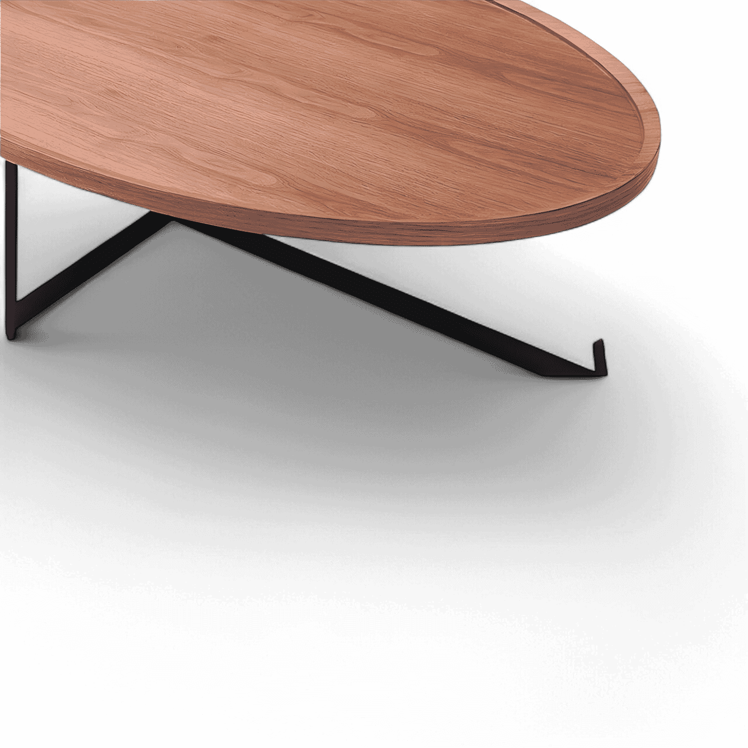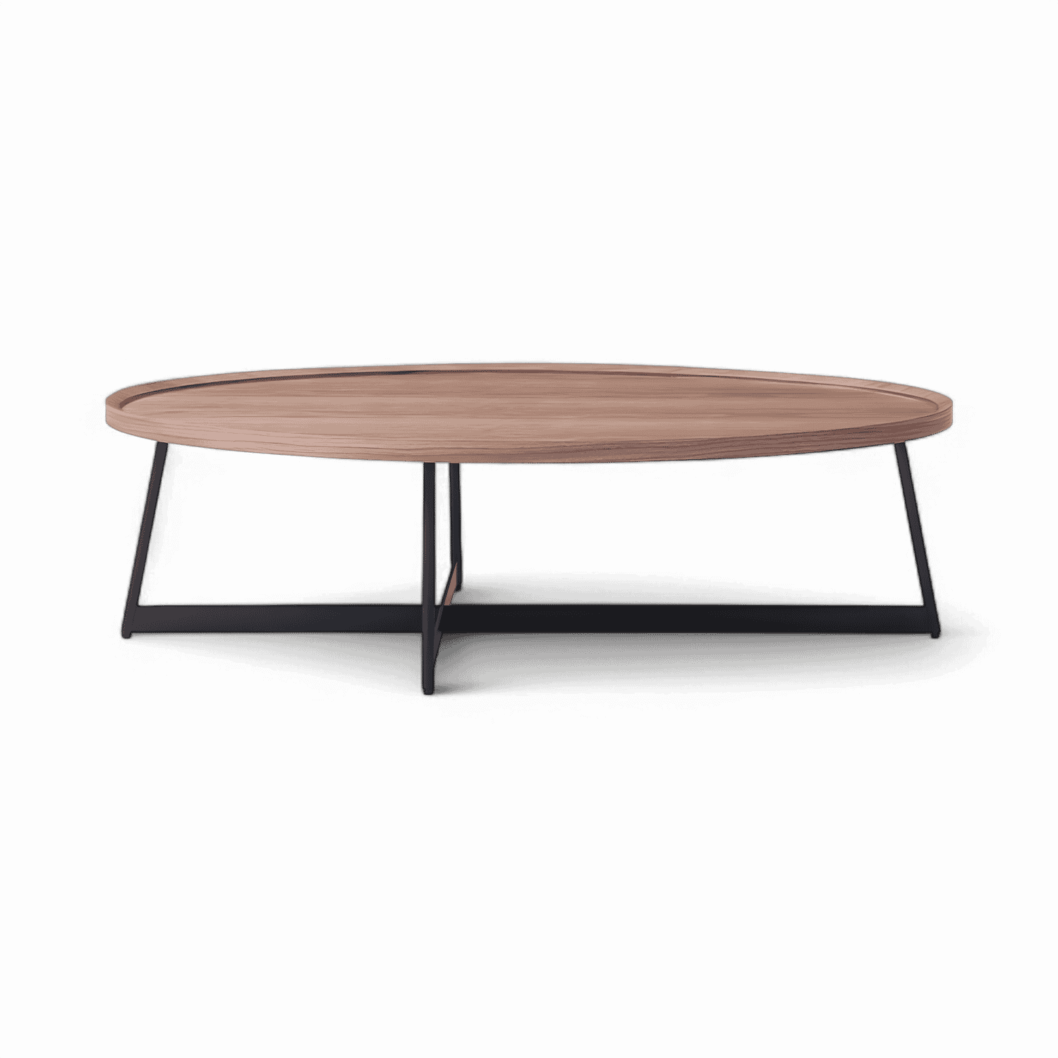 Plateau en MDF recouvert de placage de noyer, structure en métal laqué noir mat