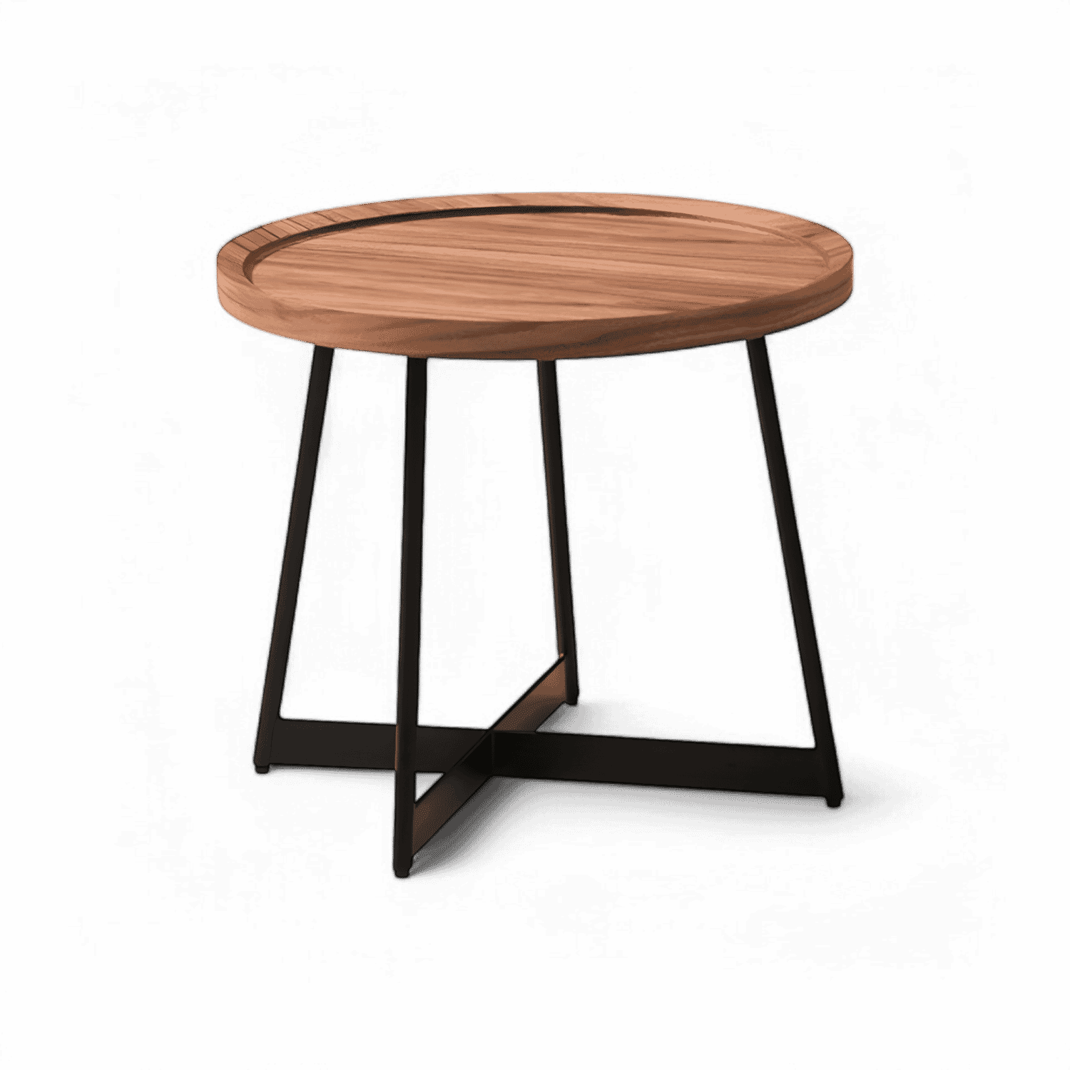 Plateau en MDF recouvert de placage de noyer, structure en métal laqué noir mat