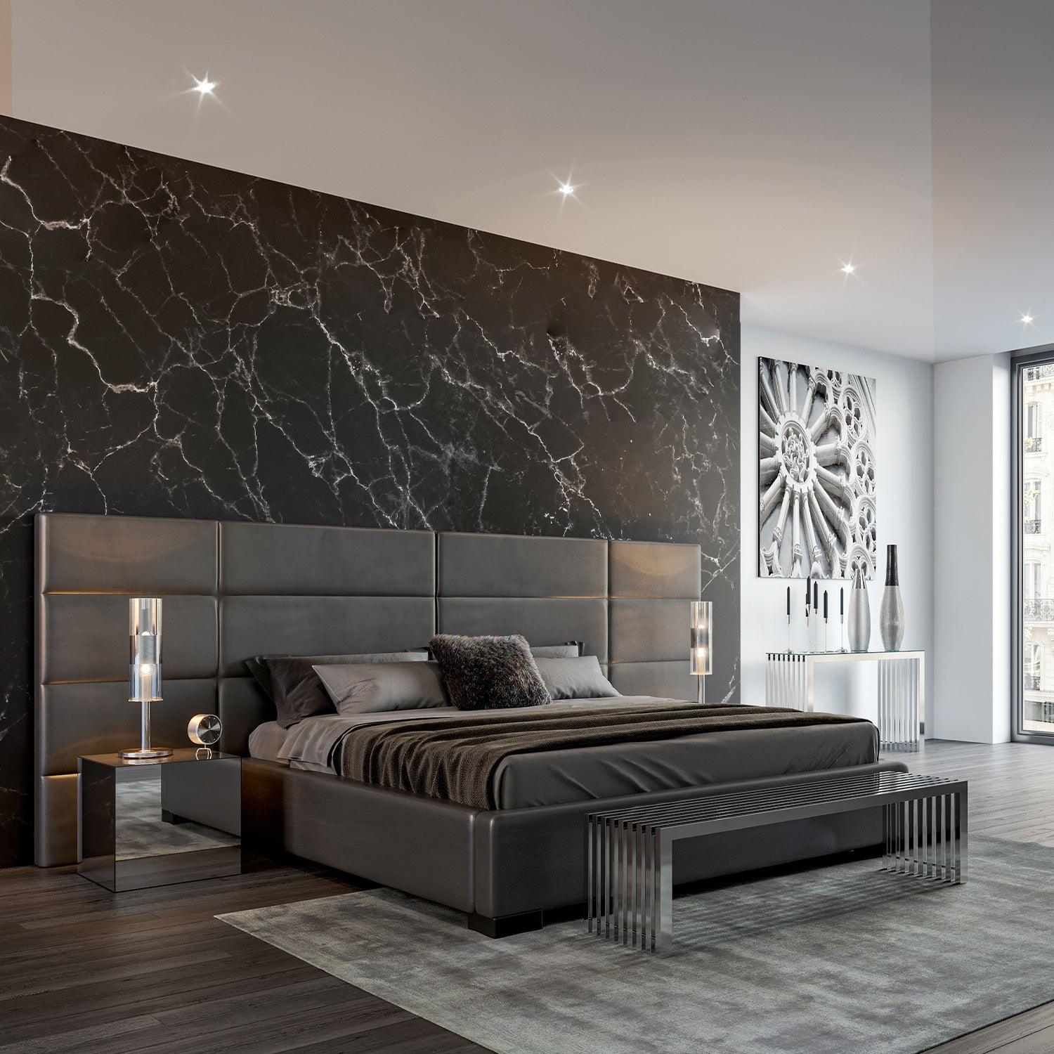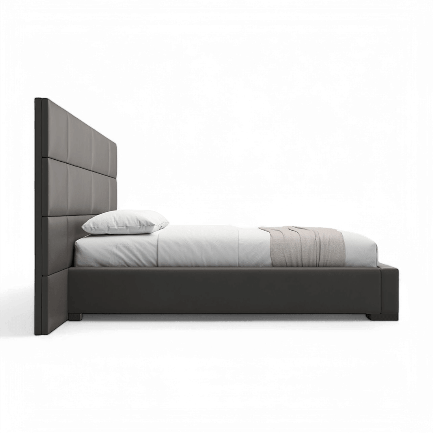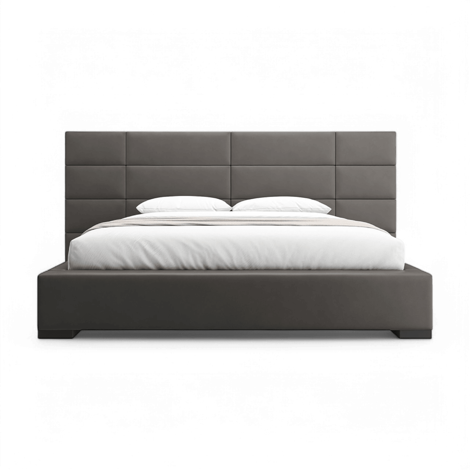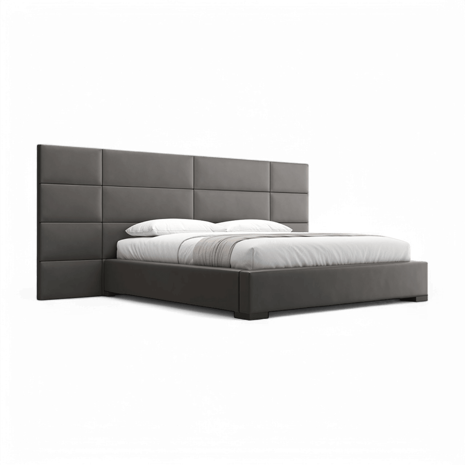 La majesté de la tête de lit surdimensionnée du lit William gris transformera n'importe quel espace en une chambre royale. Ses lignes nettes et épurées et ses panneaux carrés capitonnés lui confèrent charisme et personnalité, tandis que son rembourrage moelleux offre un soutien optimal. Le cadre généreux est recouvert de similicuir gris et orné de surpiqûres raffinées. Offrez à votre chambre la touche contemporaine dont elle a besoin !