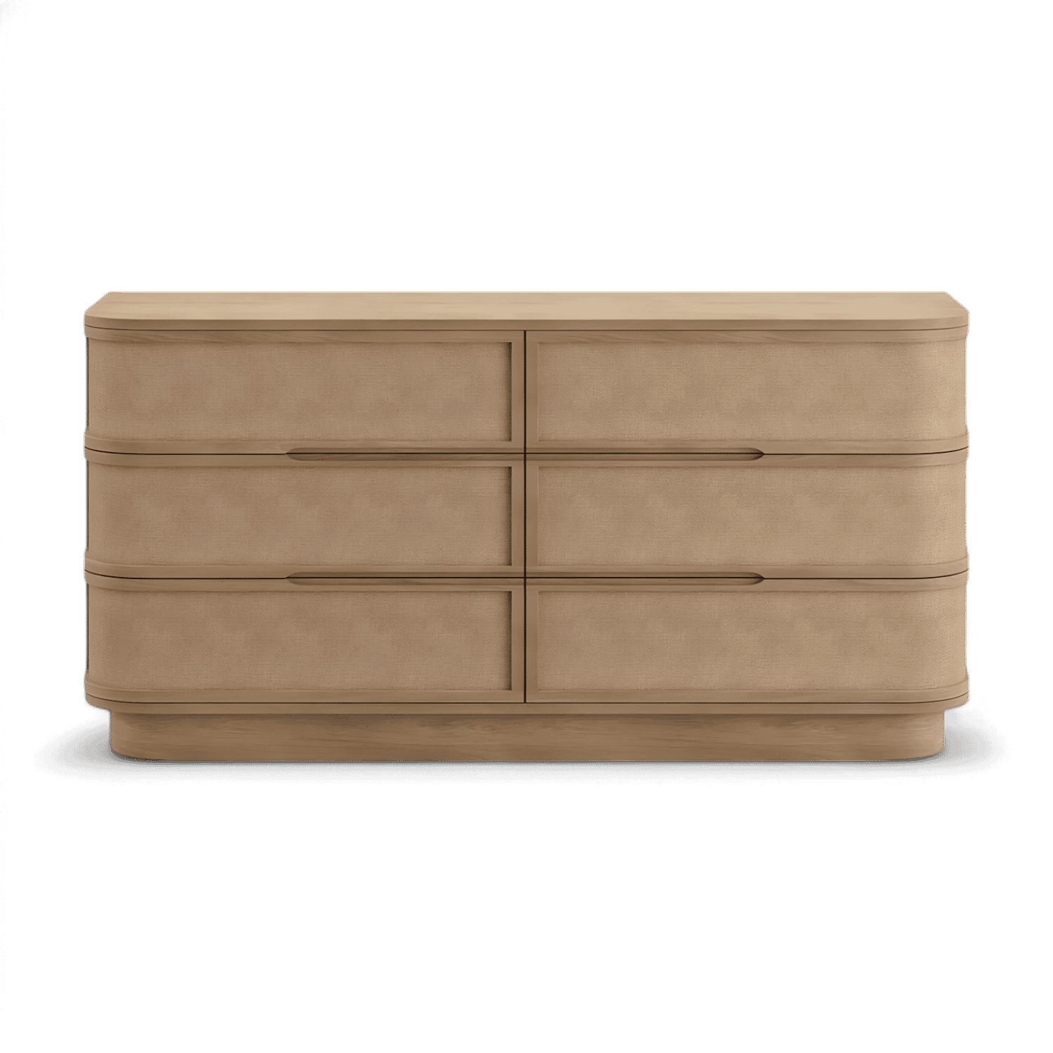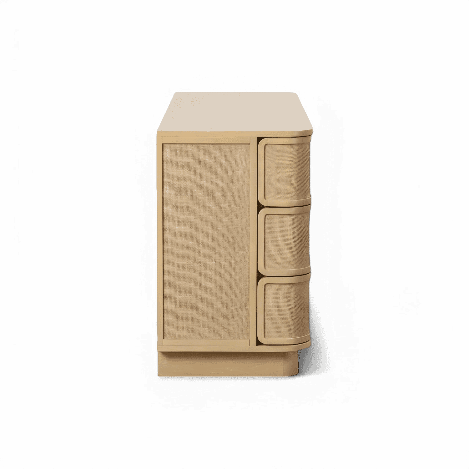 La commode Windsor allie avec brio style contemporain et charme naturel. Son plateau, plaqué chêne grège, offre une teinte douce et neutre qui s'harmonise avec tous les décors. Les tiroirs sont ornés de magnifiques détails en rotin tressé, apportant texture et élégance naturelle. Avec ses lignes épurées et son design intemporel, la commode Windsor allie fonctionnalité et esthétique, ce qui en fait un ajout parfait aux chambres, aux salons ou aux entrées.
