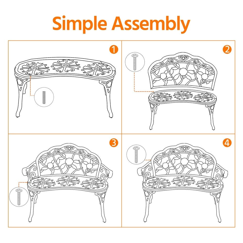 - Banc d'extérieur polyvalent : adapté à tous les environnements extérieurs, ce banc de jardin en métal est magnifique dans votre jardin, vos parcs, vos jardins ou même dans un café en plein air de style antique.