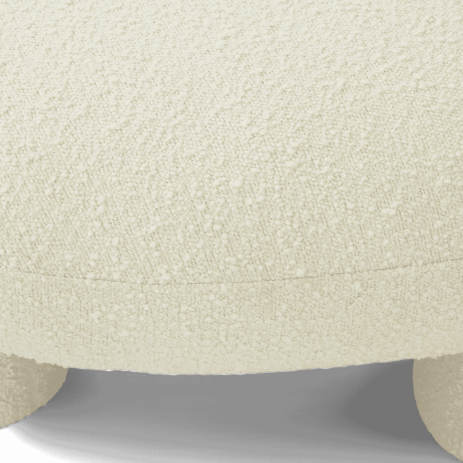 Polyester bouclé | Revêtement moelleux en tissu bouclé | Structure robuste en pin séché au four avec ressorts en zigzag | Rembourrage en mousse haute densité pour un confort optimal