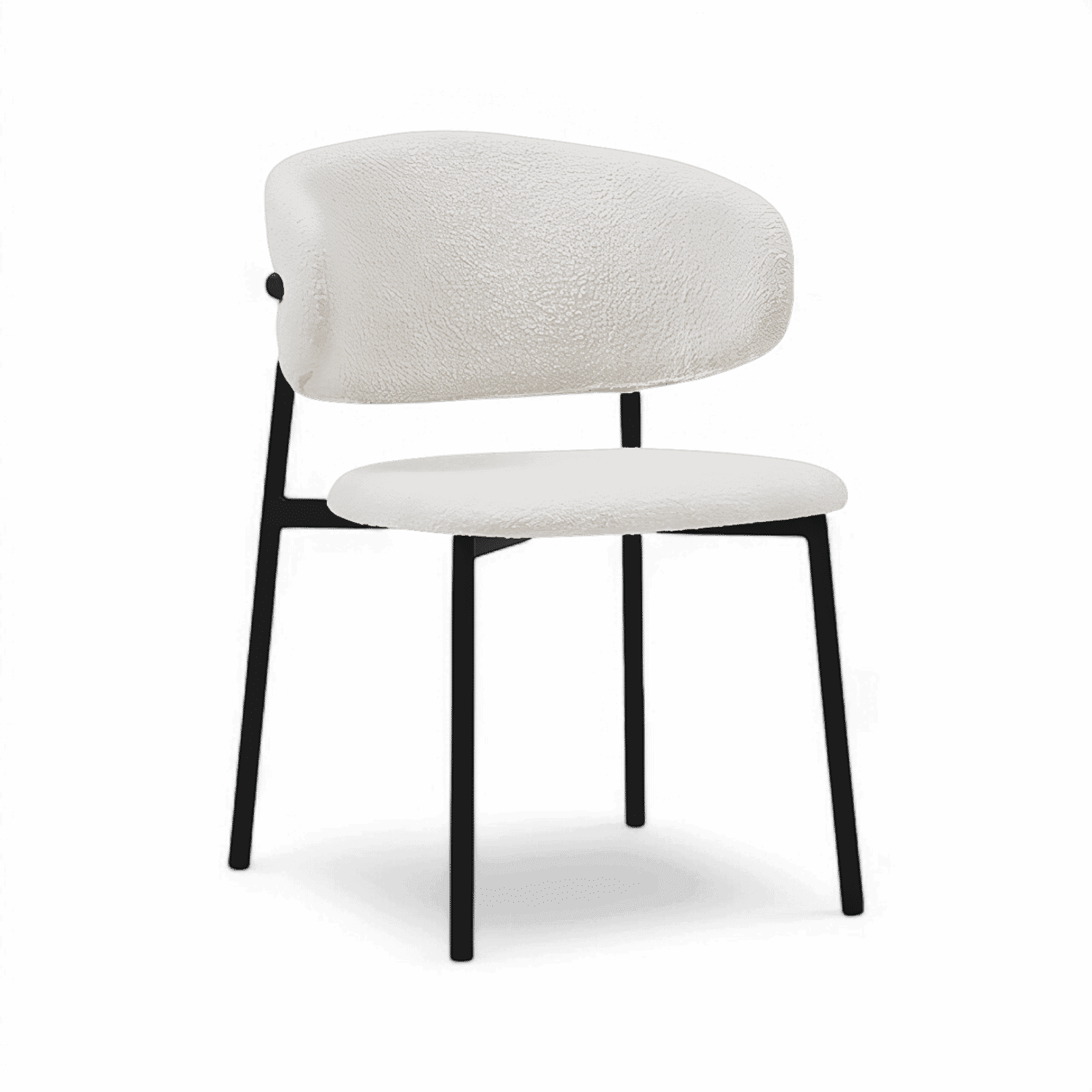 Ajoutez une touche d'élégance à votre salle à manger avec nos chaises Zoya en tissu bouclé blanc. Avec leurs bords arrondis et leur silhouette épurée, elles sont à la fois discrètes et élégantes. De plus, leur revêtement bouclé rehausse considérablement leur côté luxueux.